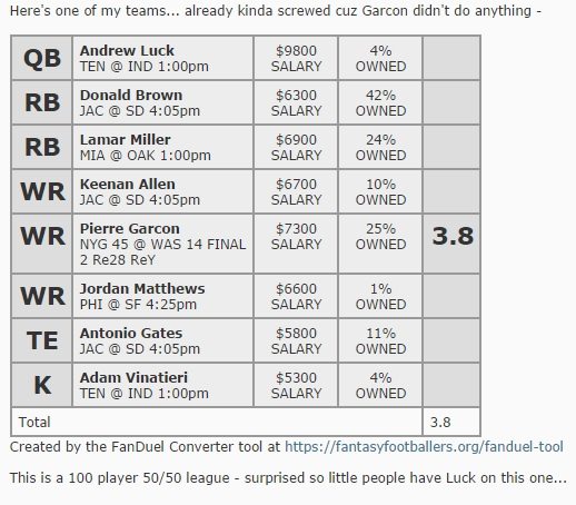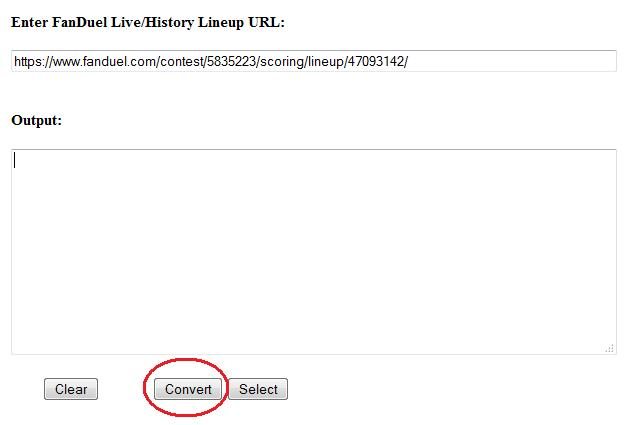 This tool allows you to Copy/Paste your team lineup from FanDuel and then formats that data into forum-friendly code, so you can share and discuss it on our forums with friends or others.